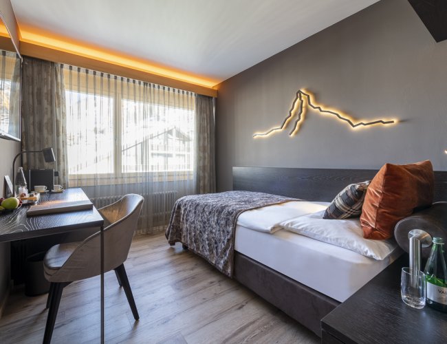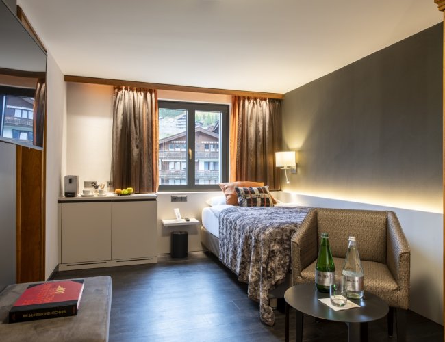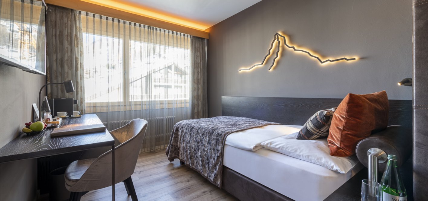 Alleinreisend? Geschäftlich unterwegs? Auf einer Bergtour? Auch für Sie haben wir ein passendes Zimmer. Gönnen Sie sich eines unserer 13 Classic Einzelzimmer und verzichten Sie auf keinen Aspekt unseres gewohnten Komfortumfangs: das Essentielle, ohne viel aussenrum, dafür mit Stil und Behaglichkeit.